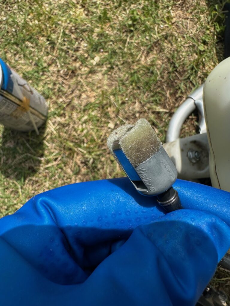 バラの剪定バサミを研ぐのと同じで、このひと手間が機械の寿命を左右します。汚れたグリスが出てくると、ここでも頑張ったね!と感謝の気持ちが湧いてきます。気持ちもスッキリ。メンテナンスの醍醐味ですね。