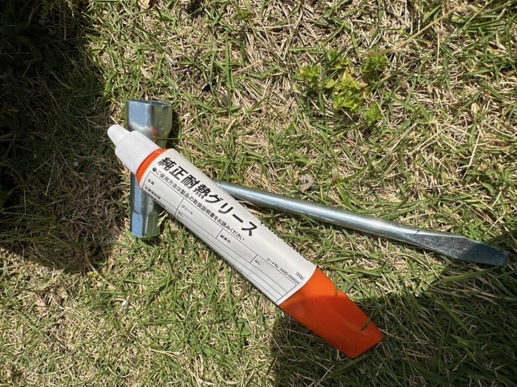 フレキシブルシャフトをフレキシブルカバーから取り出し、純正グリスを塗布します。