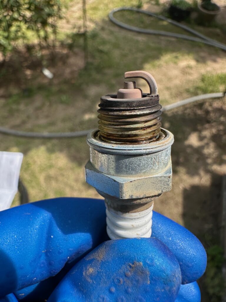 最後はエンジンの心臓部、スパークプラグの点検、清掃です。