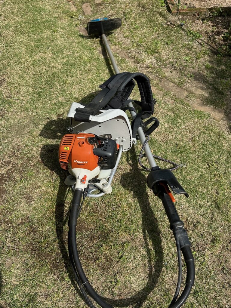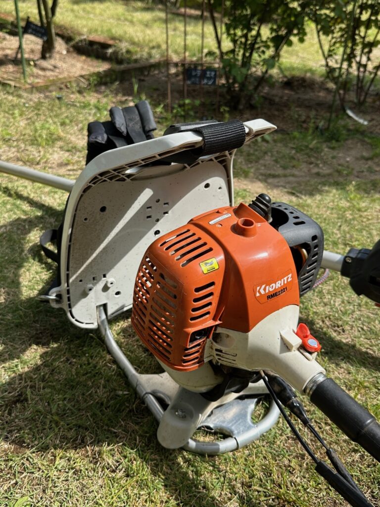 それは、夏の猛暑の中でも、生い茂る雑草からバラたちを守り続けてくれた「刈払機」「共立 RME2221」です。