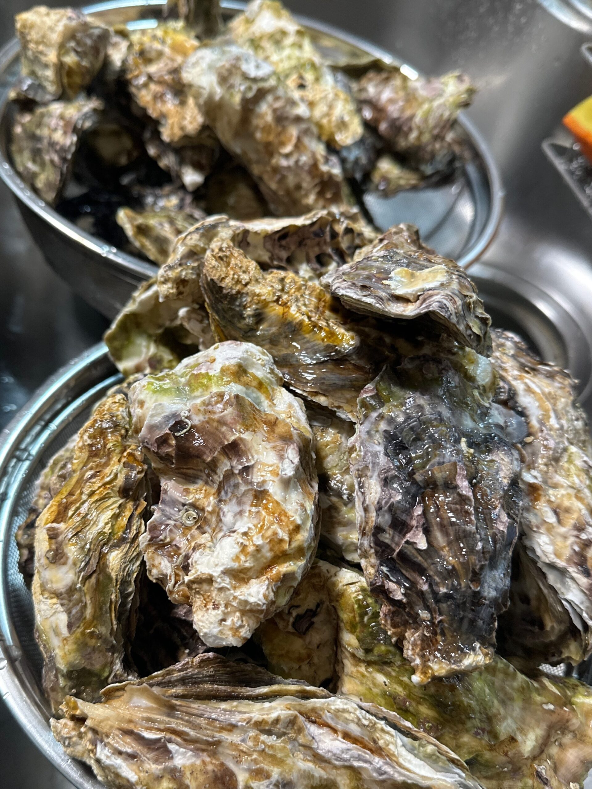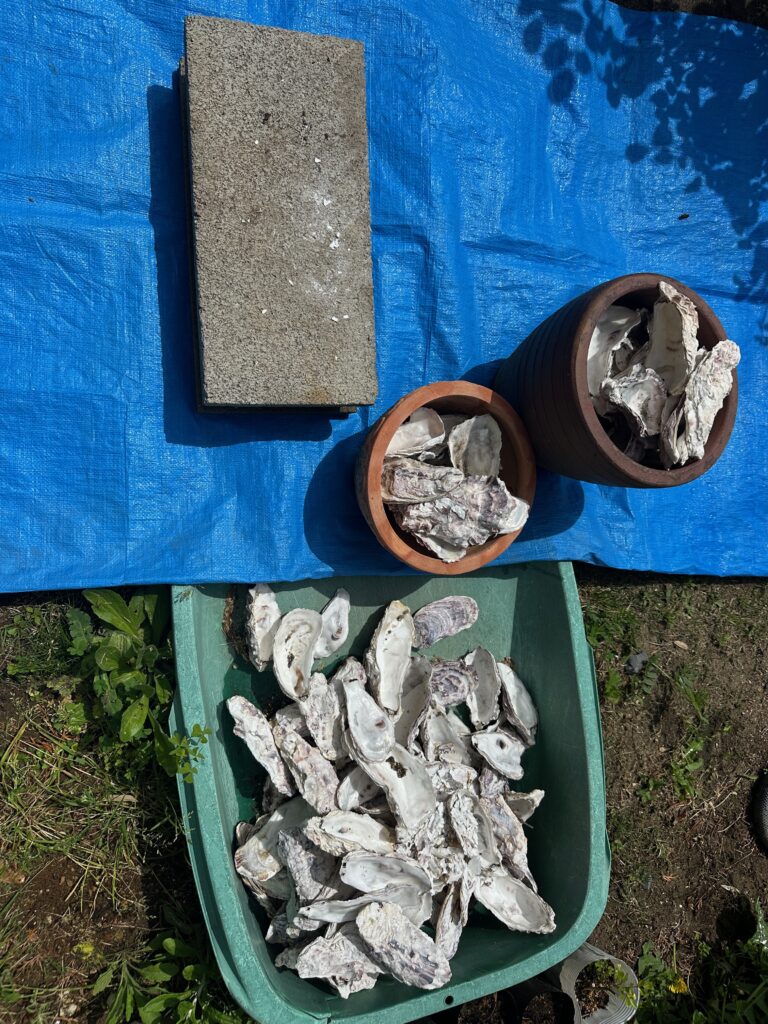 さて、食べ尽くし大満足した後に残った大量の牡蠣殻。